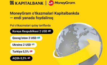 Kapitalbank va MoneyGram xalqaro pul o‘tkazmalari bo‘yicha maxsus tariflarni ishga tushirmoqda